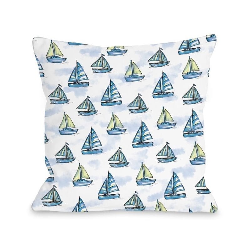 | One Bella Casa 16"" Boats Main Pillow in Gray Blue |