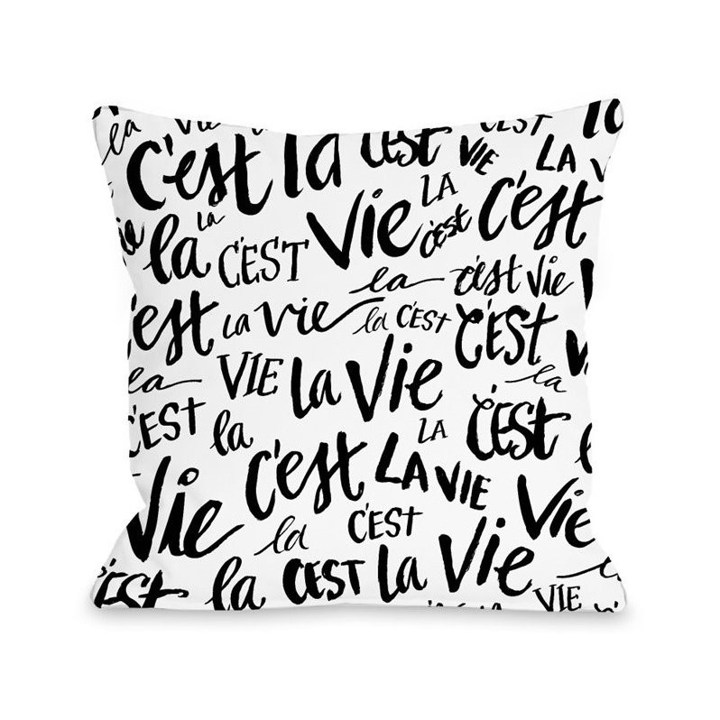 | One Bella Casa 16"" C'est La Vie Pillow in White and Black |