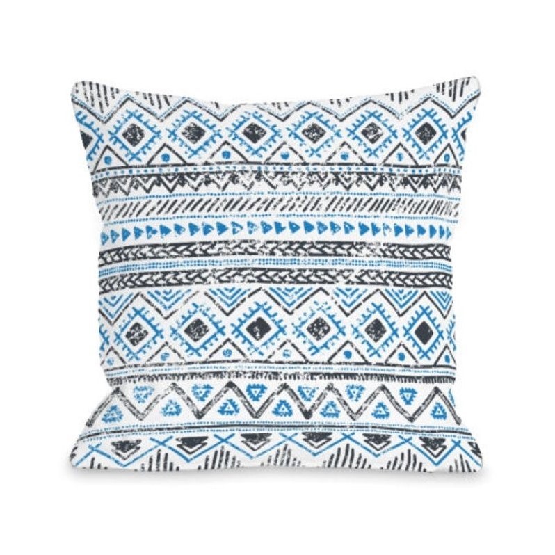 | One Bella Casa 16"" Faded Tribal Print Pillow in Blue |