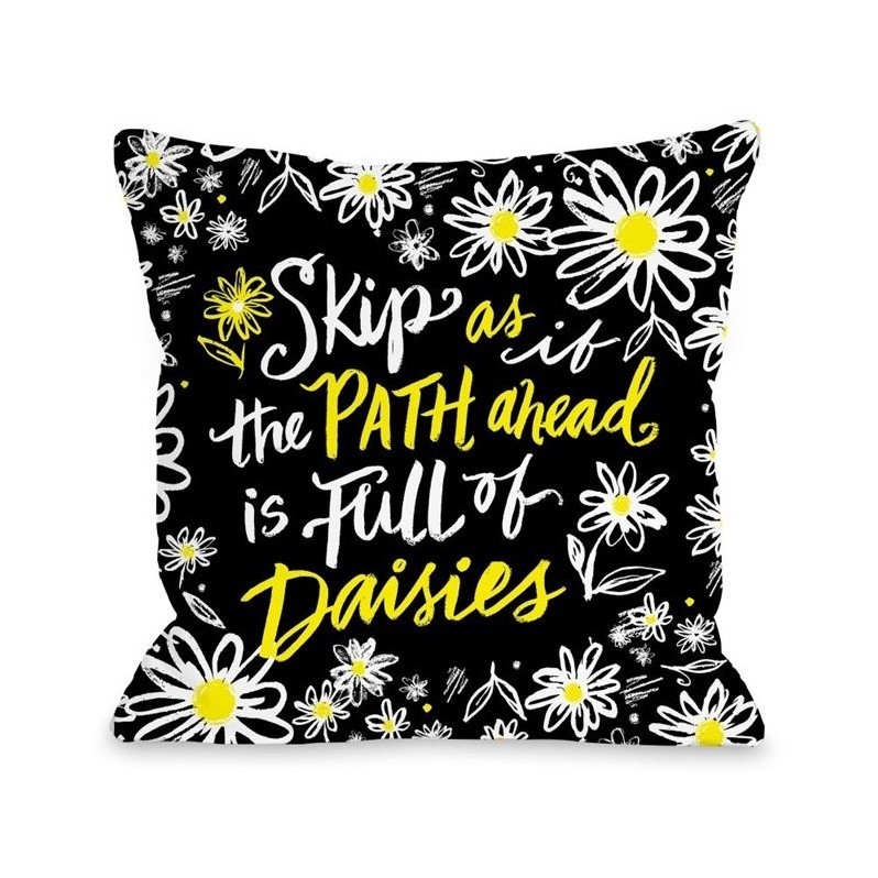 | One Bella Casa 16"" Full of Daisies Pillow in Black |