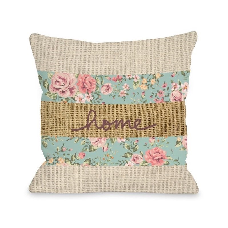 | One Bella Casa 16"" Home Floral Burlap Pillow |