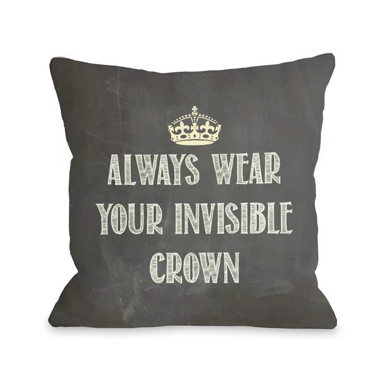 | One Bella Casa 16"" Invisible Crown Chalkboard Pillow in Gray |