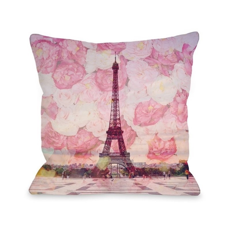 | One Bella Casa 16"" La Tour Eiffel Pillow in Pink |