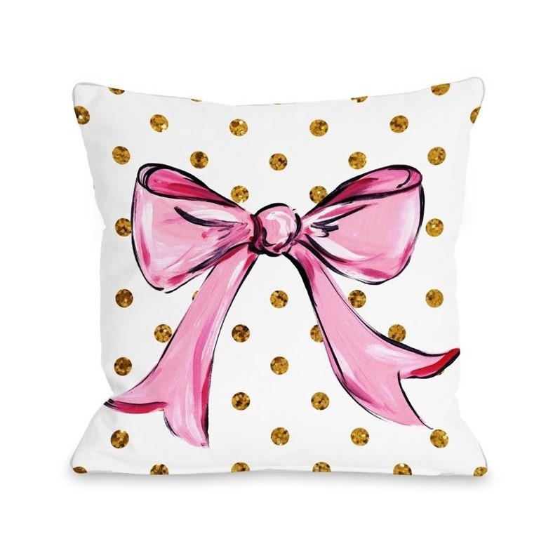 | One Bella Casa 16"" Pink Bow Dots Bows Pillow in White and Pink |