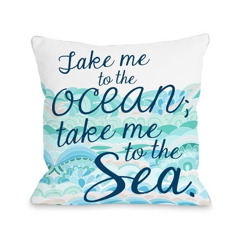 | One Bella Casa 16"" Take Me to the Ocean Pillow in Blue |