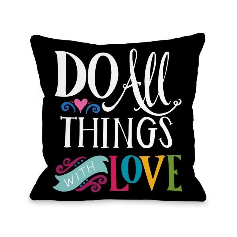 | One Bella Casa 18"" All Things With Love Pillow in Black |