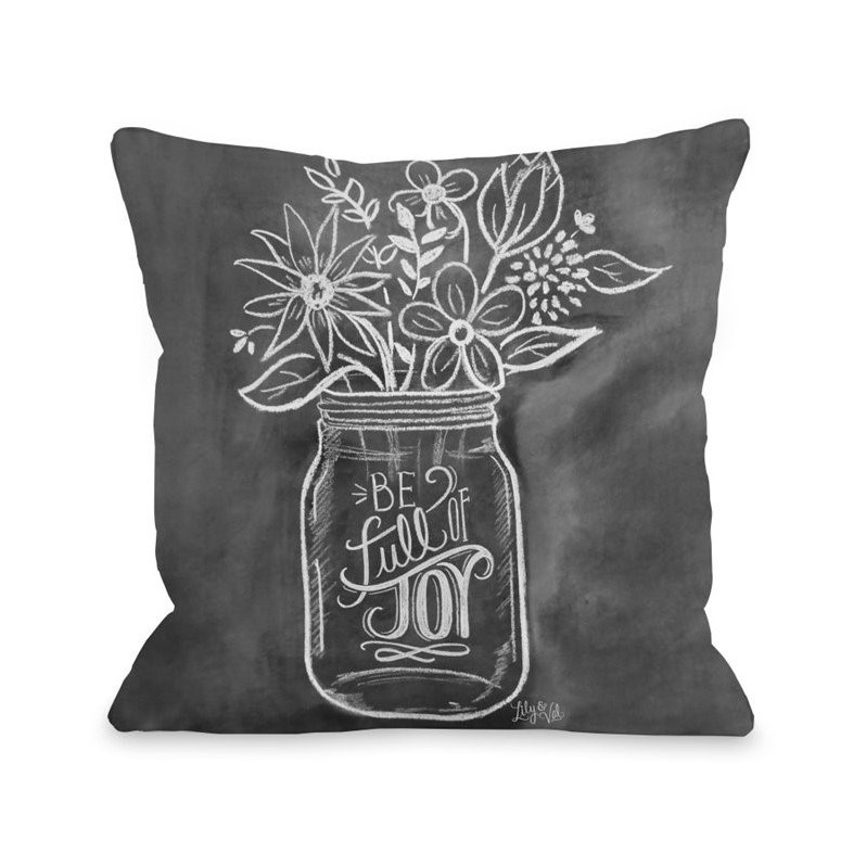 | One Bella Casa 18"" Be Full of Joy Pillow in Gray |