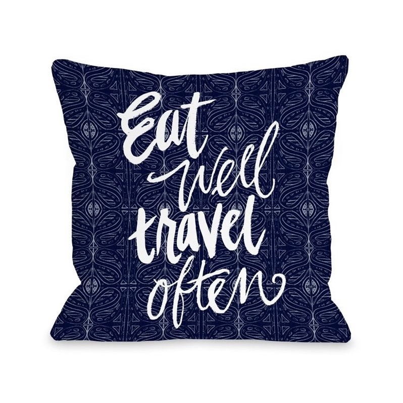 | One Bella Casa 18"" Eat Well Travel Often Pillow in Blue |
