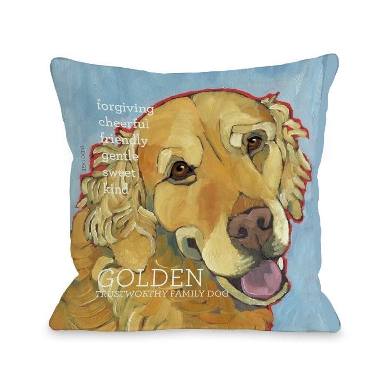 | One Bella Casa 18"" Golden Retriever Pillow in Light Blue |