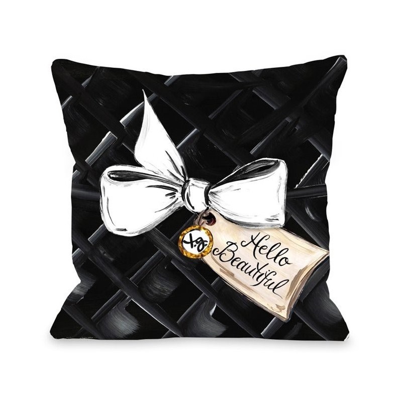 | One Bella Casa 18"" Hello Beautiful Bow Gold Glitter Pillow in Black |