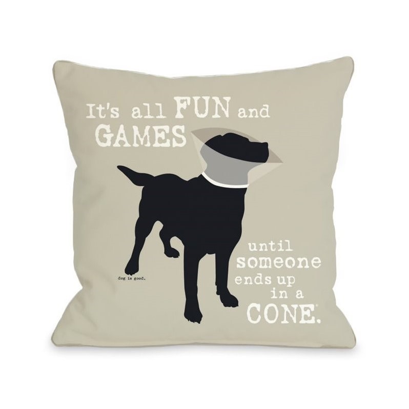 | One Bella Casa 18"" It's All Fun and Games Pillow in Oatmeal |