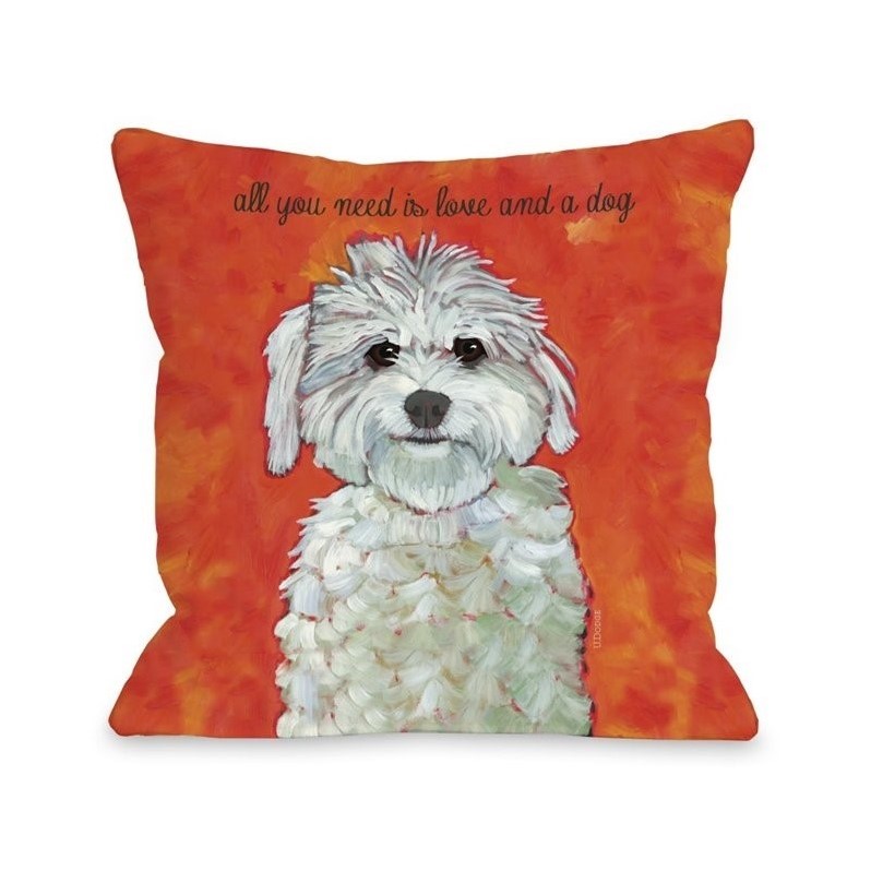 | One Bella Casa 18"" Love and A Dog Pillow in Red Orange |