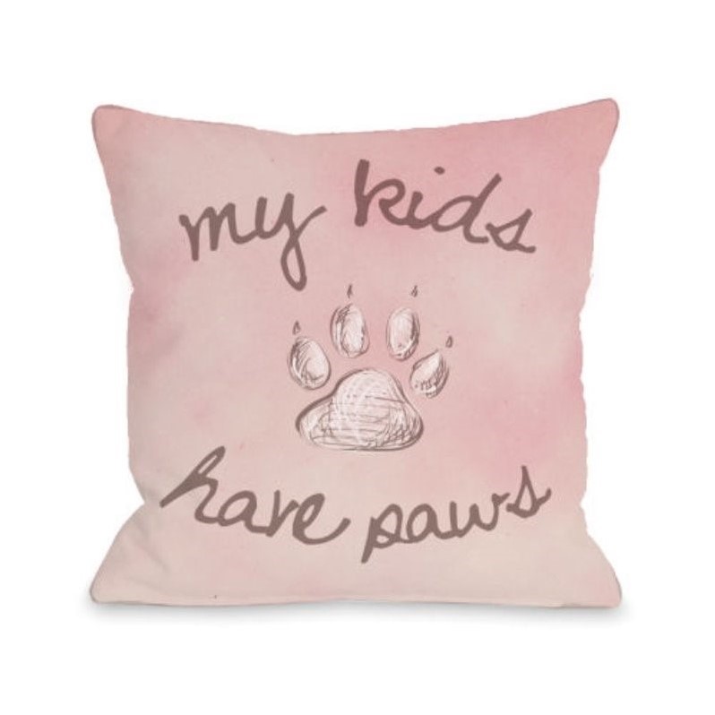 | One Bella Casa 18"" My Kids Have Paws Pillow in Pink |