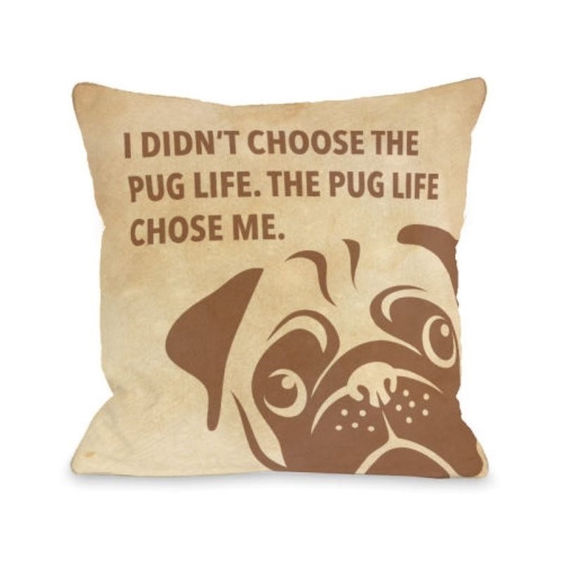| One Bella Casa 18"" Pug Life Chose Me Stacked Pillow in Tan |