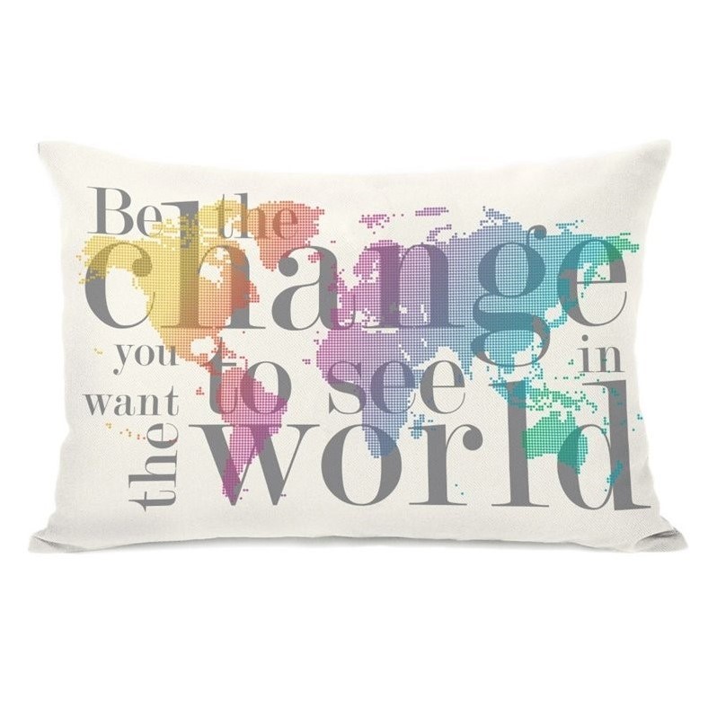 | One Bella Casa 20"" Be the Change Map Pillow in Cream |