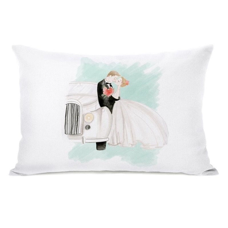 | One Bella Casa 20"" Bride and Groom Kiss Pillow in Mint |