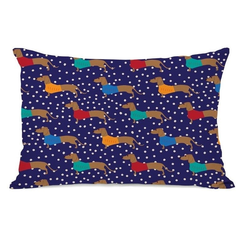 | One Bella Casa 20"" Dachshund Dots Pillow in Navy |