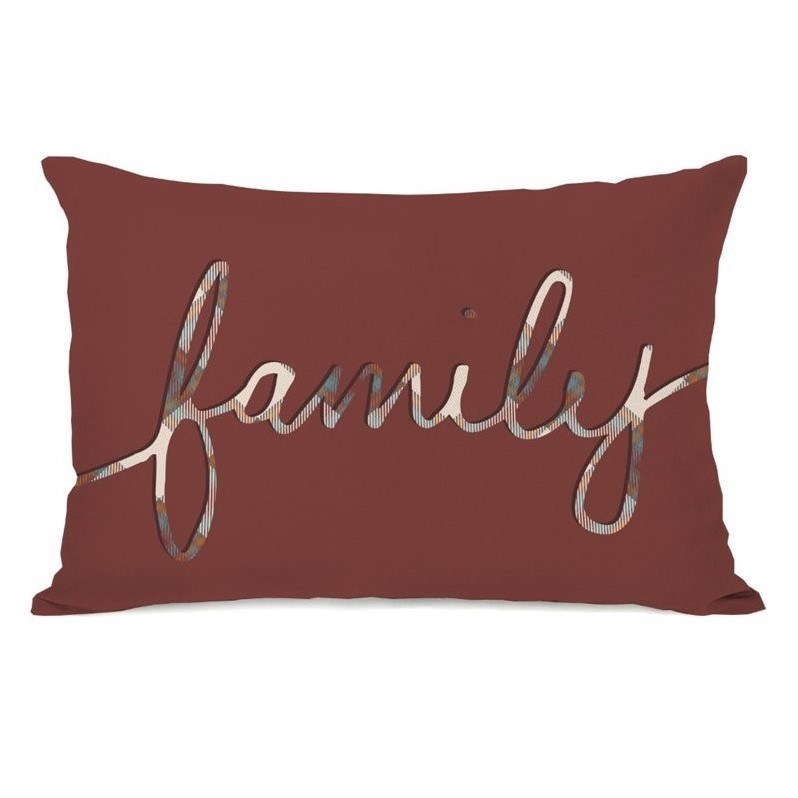 | One Bella Casa 20"" Plaid Family Pillow in Burgandy |