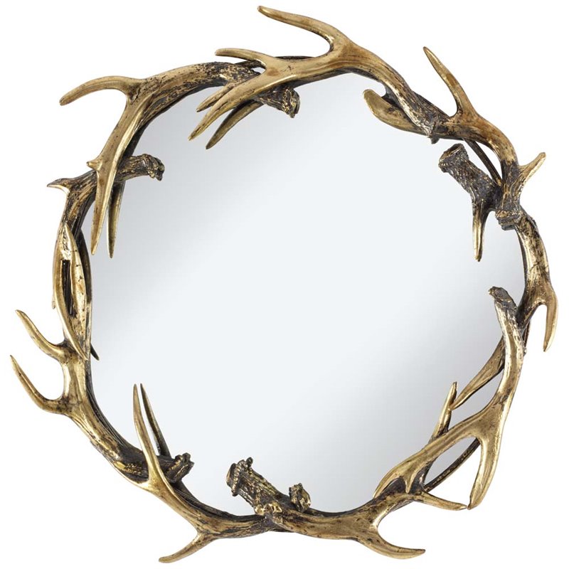 | Pacific Coast Lighting 20"" Round Antlers Mirror in Antique Gold |