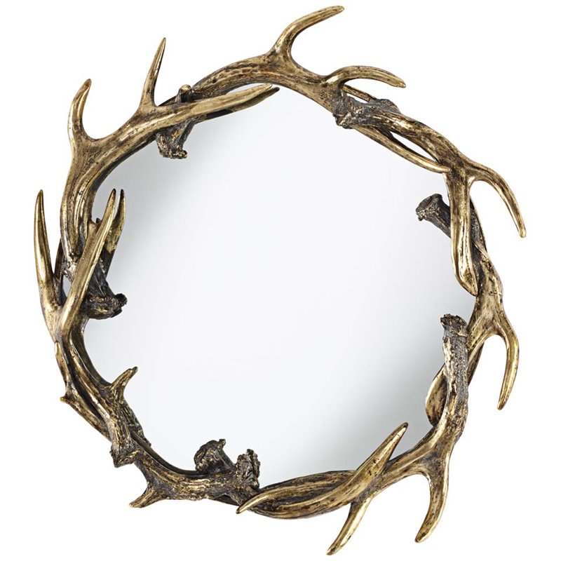 | Pacific Coast Lighting 24"" Round Antlers Mirror in Antique Gold |