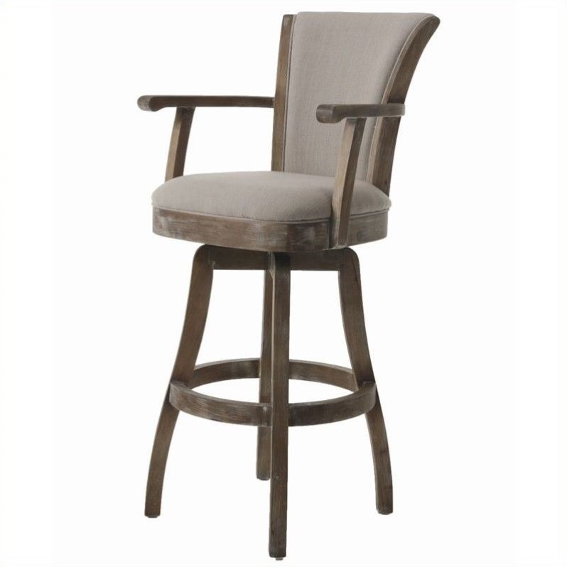 ![]() Pastel Furniture - Bar Stools - QLGL217374091 - The Glenwood Barstool with arms is a beautifully made barstool that has a simple yet elegant design that is perfect for any decor. An ideal way to add a classic flair to any dining or entertaining area in your home. This swivel barstool features a quality wood frame with sturdy legs and foot rest finished in Natural Distressed. The padded seat is upholstered in My Putty Ivory offering comfort and style. Available in 26"" counter or 30"" bar height. Finish: natural; Fabric: MY Putty Ivory; Made of MDF Wood and Polyester Fabric; Traditional wood; Foot rest; Padded seat; Sturdy legs. Specifications:Overall Dimensions: 41.25"" H x 22"" W x 24"" D; Product Weight: 33.1 lbs. Price: 352.99 |