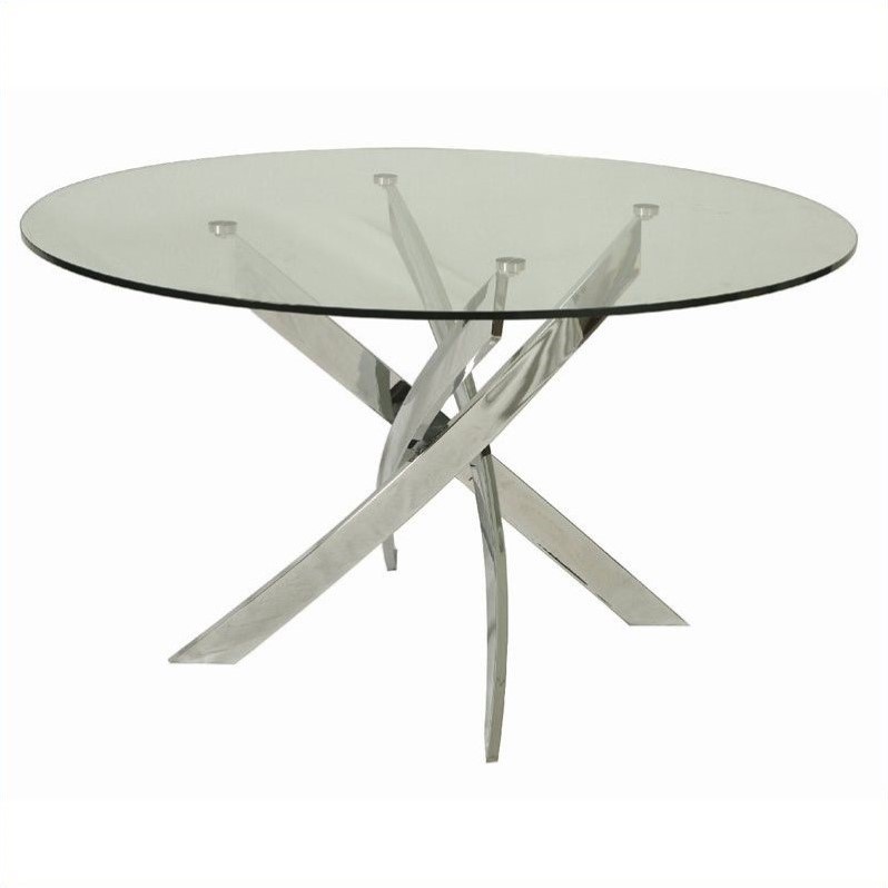 | Pastel Furniture Fahrenheit Round Glass Top Dining Table in Chrome |