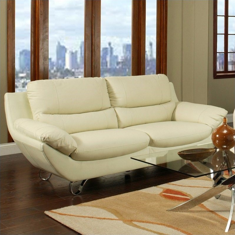 | Pastel Furniture Mableton Leather Sofa in Ivory |
