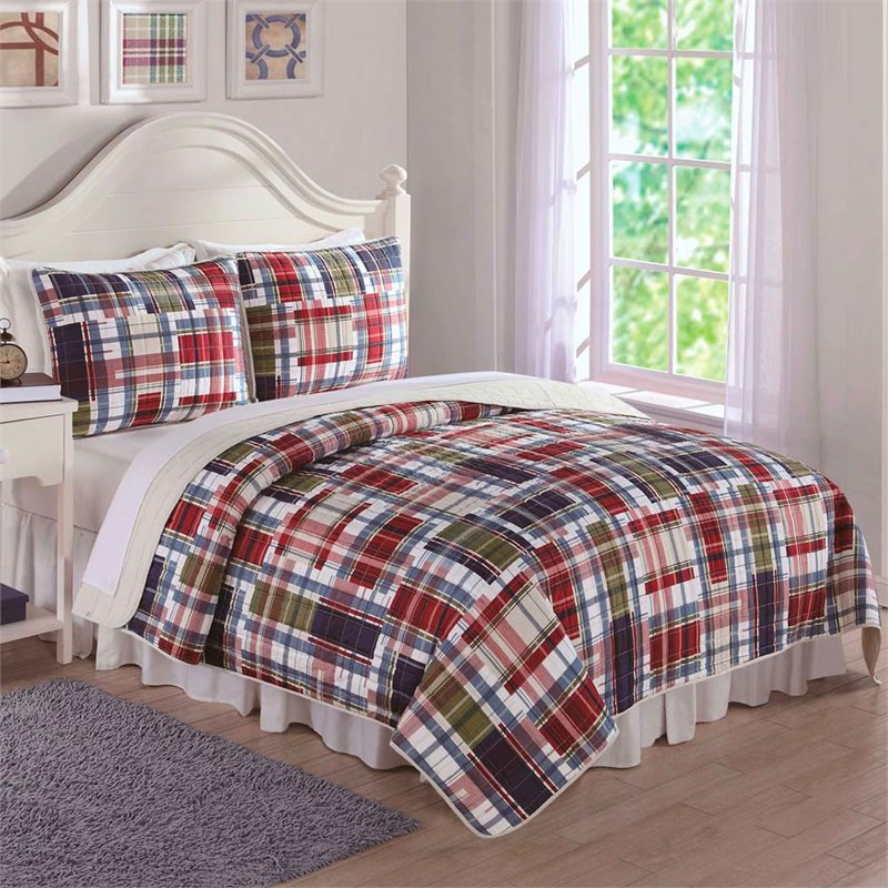 | PEM America Navy Khaki Preppy 2 Piece Twin Plaid Quilt Set |
