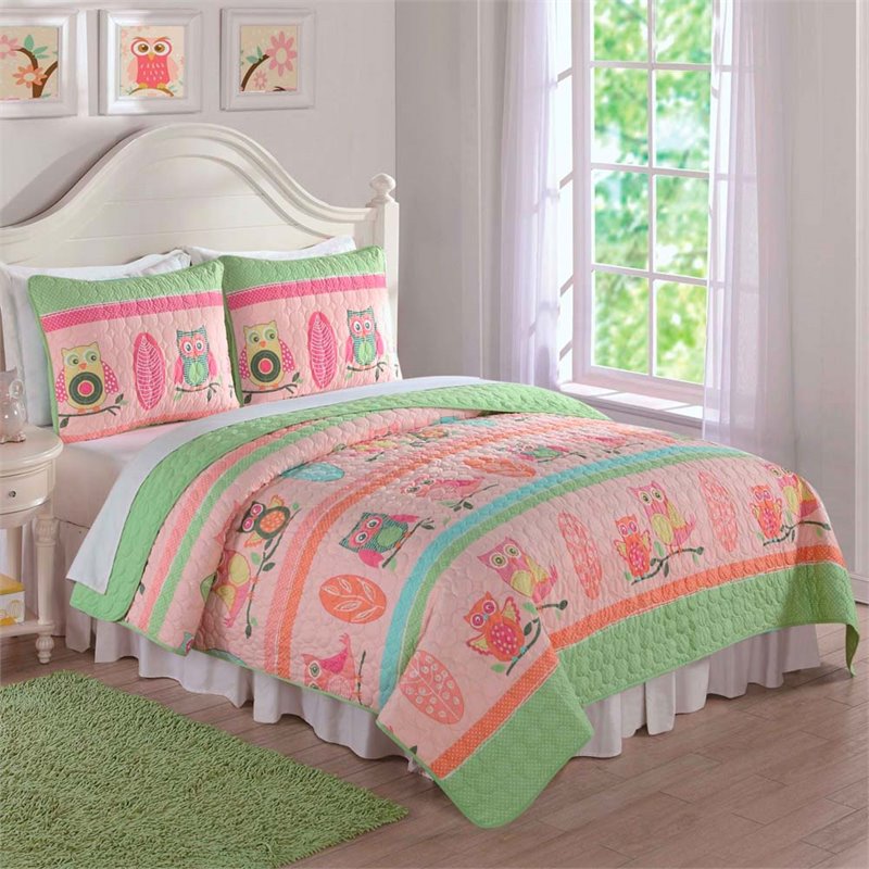 | PEM America Owl Stripe 2 Piece Twin Quilt Set |