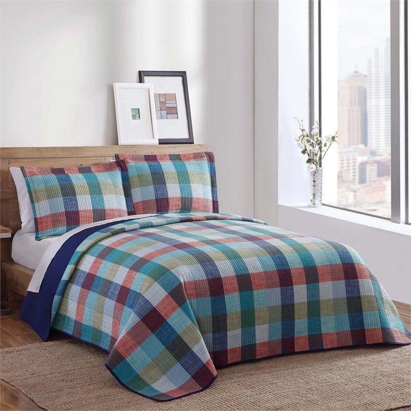 ![]() PEM America - Quilt & Coverlet - QS1536KG2300 - Classic yarn dye check pattern in a rainbow of colors. Yarn Velvet color is means the color is in the yarn and quilt maintains its look for years to come. The reverse is a solid color soft microfiber cloth. The cotton filling provides a great weight that is great for all year round. King Quilt (104x90 inches) and 2 standard pillow shams (20x26 inches). Finish: MultipleStyle: ModernMaterials: 100% Cotton yarn dye Face cloth 100% Microfiber ReverseFill: 94% Cotton, 5% Polyester and 1% other FibersCleaning Instructions: Machine washableMade in China Specifications:1 Quilt: 90"" W x 90"" D2 Shams: 20"" W x 26"" DOverall Product Weight: 9 lbs Price: 129.99 |