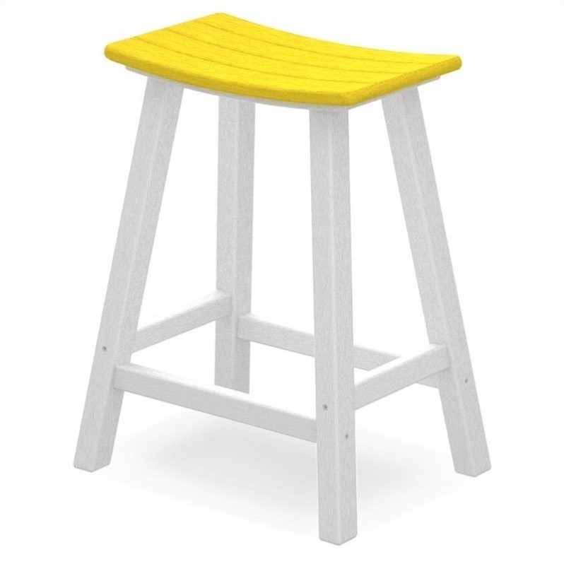 | Polywood 24"" Outdoor Saddle Bar Stool in White and Lemon |