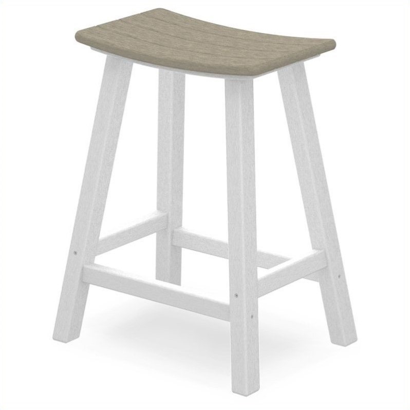 | Polywood 24"" Outdoor Saddle Bar Stool in White and Sand |