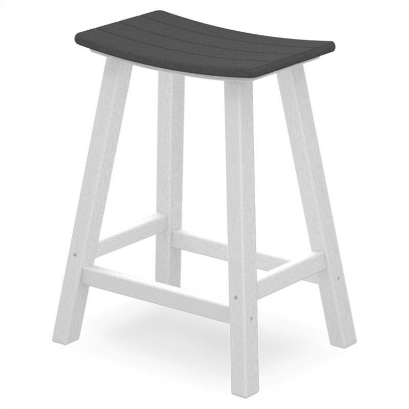 | Polywood 24"" Outdoor Saddle Bar Stool in White and Slate Grey |