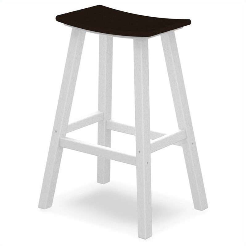| Polywood 29"" Outdoor Saddle Bar Stool in White and Mahogany |