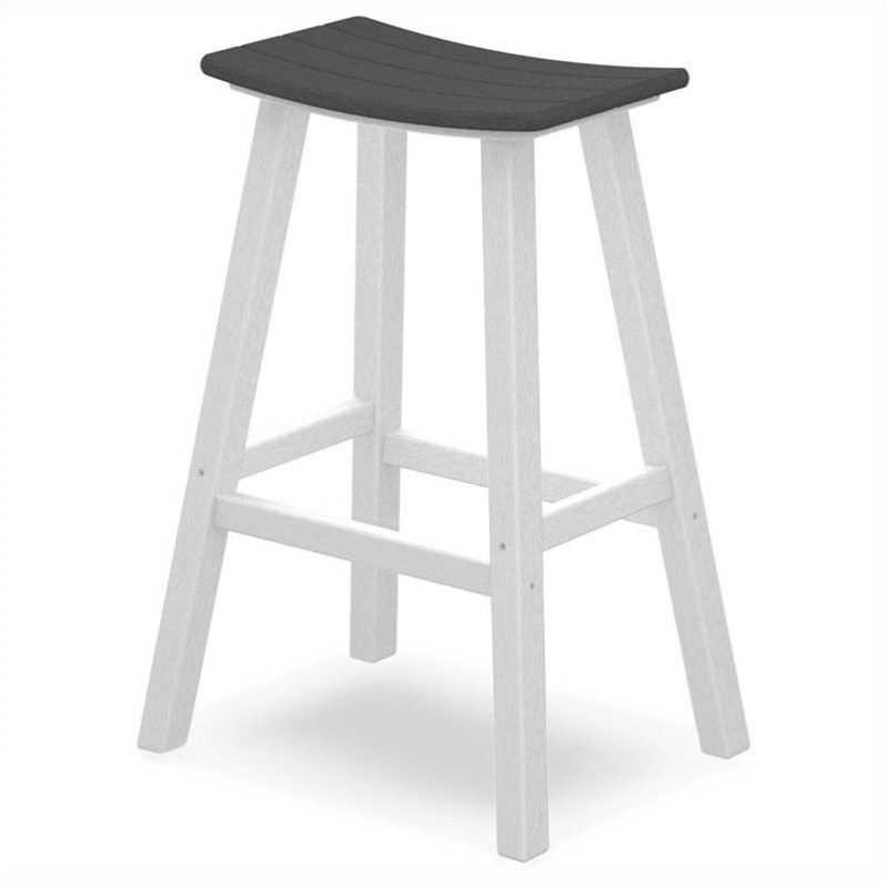 | Polywood 29"" Outdoor Saddle Bar Stool in White and Slate Grey |