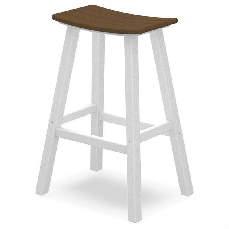 | Polywood 29"" Outdoor Saddle Bar Stool in White and Teak |