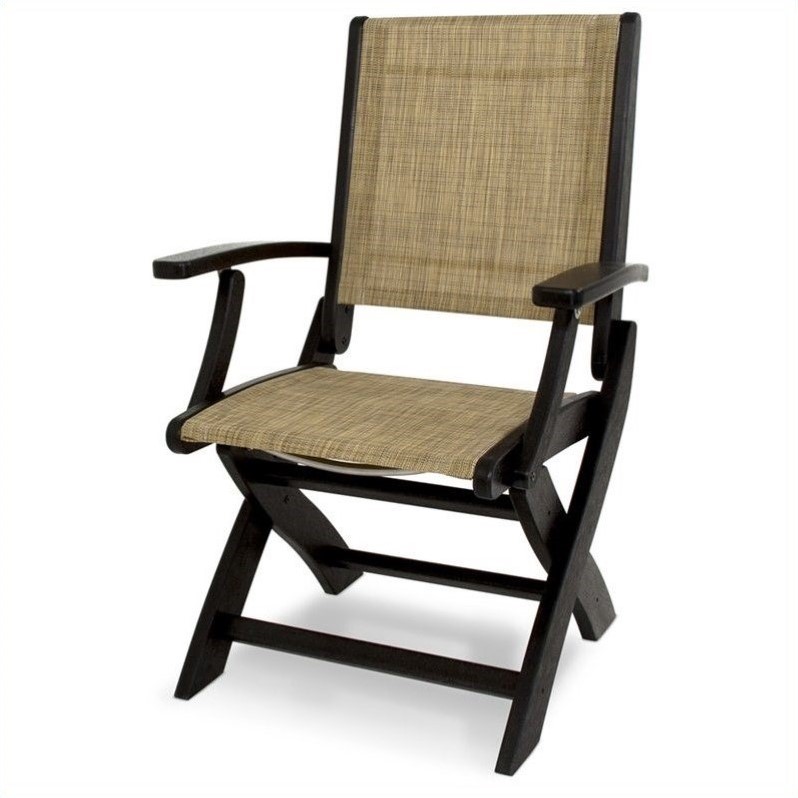 | Polywood Coastal Outdoor Folding Chair in Black and Burlap |