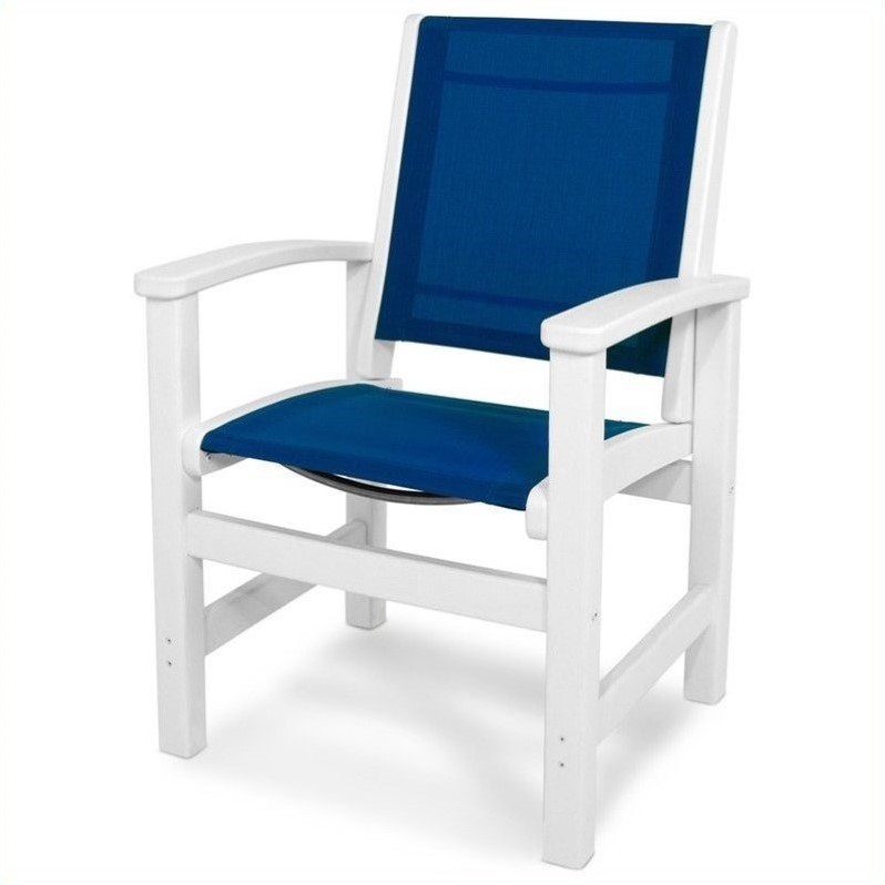 | Polywood Coastal Patio Dining Chair in White and Metallic |