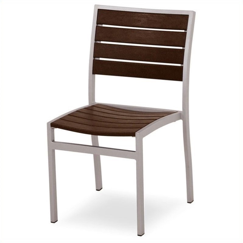 | Polywood Euro Patio Dining Chair in White and Mahogany |