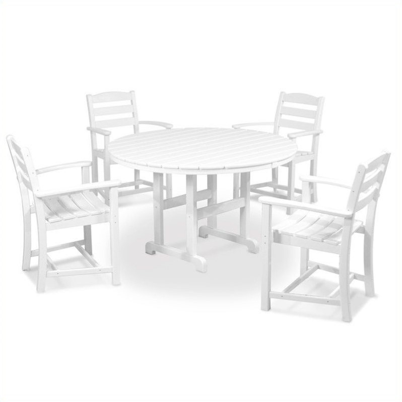 | Polywood La Casa 5 Piece Wood Patio Dining Set in White |