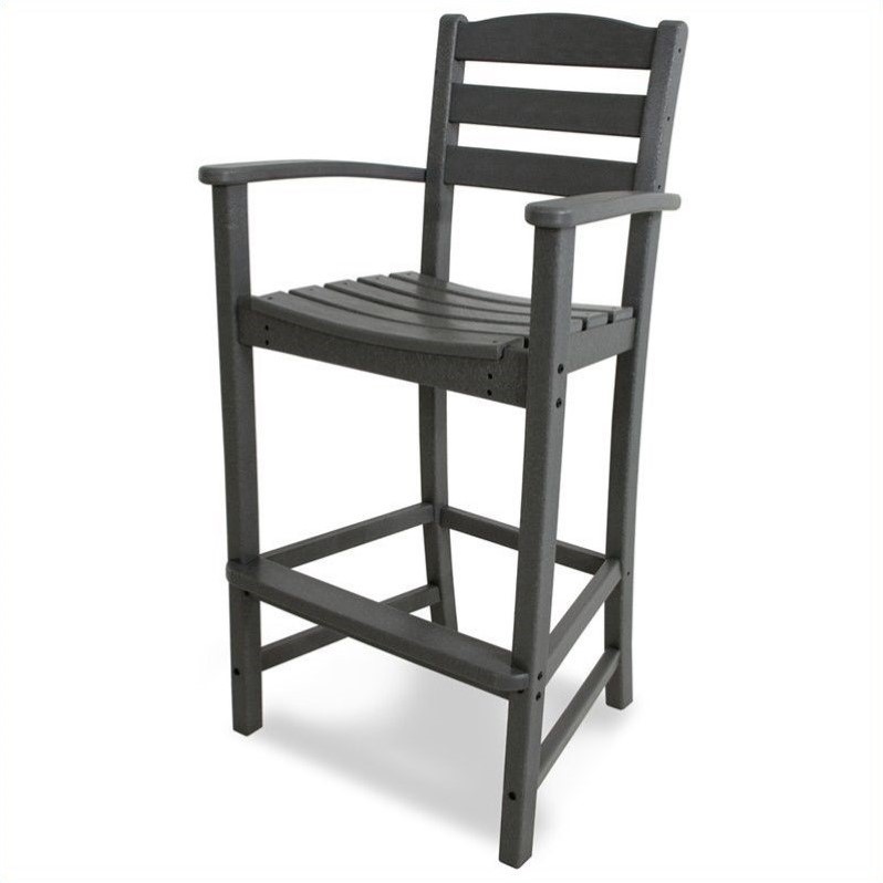 | Polywood La Casa Cafe Outdoor Bar Arm Chair in Grey |
