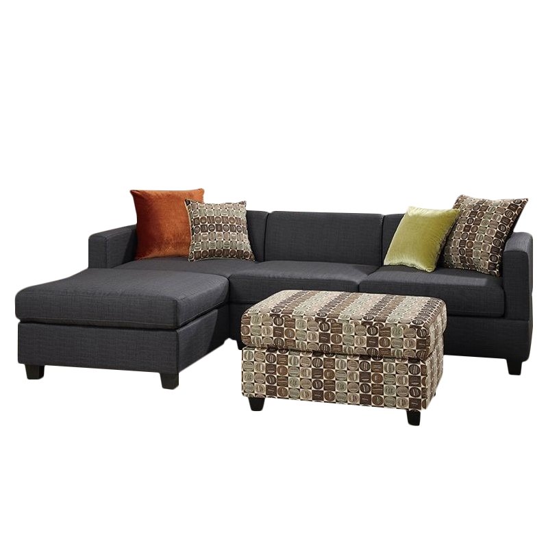 | Poundex Bobkona Dayton 3 Piece Sectional Sofa in Slate Black |