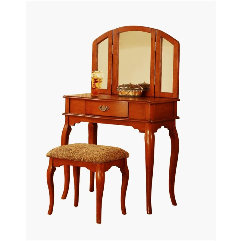 | Poundex Bobkona Jaden Vanity Set with Stool in Walnut |