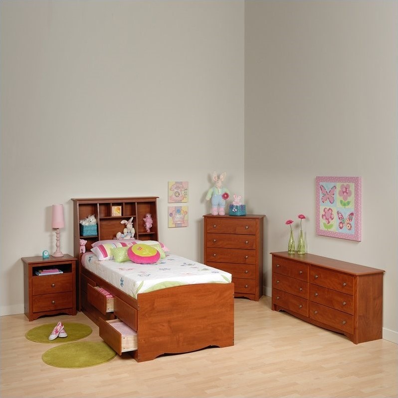 | Prepac Monterey Cherry Twin Wood Platform Storage Bed 4 Piece Bedroom Set |