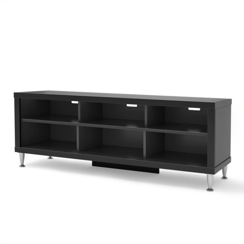 ![]() Prepac - TV Stands - BCAL05081 - With its simple silhouette and versatile storage, the Prepac Series 9 Designer TV Stand is the ideal partner for your 55 inch or larger flat screen TV. The unit is divided into 6 open storage compartments for audio-video and gaming components, with rear cut-outs for cable management and ventilation. Total weight capacity is rated at 200 lbs with the top shelf capable of supporting televisions up to 80 lbs. To finish off the modern look the stand features 4 high quality adjustable brushed nickel legs. This product ships ""Ready to Assemble"" with an instruction booklet for easy assembly. Finished in Durable Black Laminate; 4 adjustable brushed nickel legs compensate for uneven floors; 6 open storage compartments; Constructed from CARB-compliant, laminated composite woods; Ships Ready to Assemble, includes an instruction booklet for easy assembly; 5-year manufacturer's limited warranty on parts . Specifications: Assembled Dimensions: 20.25"" H x 55"" W x 15.5"" D; Upper Compartments: 5.5"" H x 17"" W x 14.75"" D; Lower Compartments: 7"" H x 17"" W x 15.5"" D; Center Compartment: 18"" W; Total Weight Capacity: 200 lbs; Top Weight Capacity: 80 lbs; Compartment Weight Capacity: 20 lbs . Price: 187.99 |