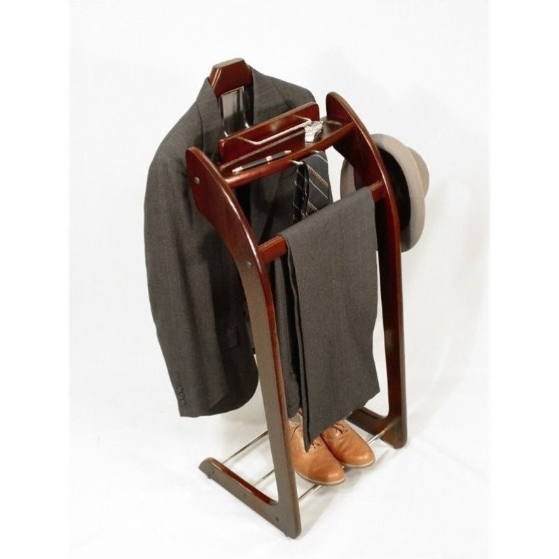 ![]() Proman Products - Valet Stands - VL16140 - The Windsor Wardrobe Valet in Mahogany is the ultimate in wardrobe care. It accommodates a jacket, a pair of trousers, and a tie bar that holds two ties and a belt. It also features a tray to hold your wallet, spare change and jewelry. The base holds one or two pairs of shoes. Our solid wood construction ensures years of enjoyment from this piece. This valet is also available in dark walnut and cherry finishes. Mahogany Finish; Elegant Design In Style with Brass Hardware; Constructed With Solid Hard Wood; Hand Crafted For The Contoured Uprights; Assembly Required. Specifications:Overall Product Dimensions: 7.75"" H x 12.5"" W x 5"" D. Price: 91.99 |