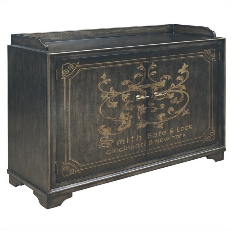 ![]() Pulaski - Wine Racks - 730046 - At first glance, this wine cabinet has the appearance of an old bank safe. The aged Knox finish offsets the gold tone hand-painted design on the door fronts. Even the custom hardware adds to the theme. You will feel safe putting your collection of wine inside. The top has gallery rails, making it a great serving piece as well. Finish: aged knox brown; Material: Wood Composites, Select Hardwoods; Interior dimensions: 15 1/2"" x 13 3/4"" x 36"" behind each door; Gallery rails; Two doors; Hand painted plank look doors; Stemware racks; Bottle rack; One divided fixed shelf; Two adjustable shelves. Specifications:Overall Product Dimensions: 43"" H x 51"" W x 17"" D; Product Weight: 168.68 lbs. Price: 697.99 |