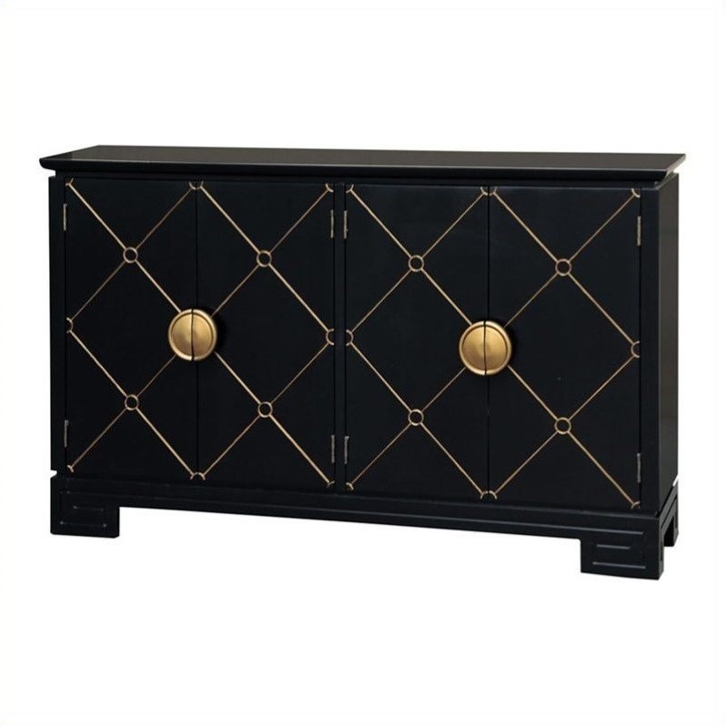 ![]() Pulaski - Console Tables - 641158 - Create a dramatic appeal in your living space with this uniquely designed console. It features a black Hauser finish with gold accent overlays in a diamond pattern. The four doors have oversized, brass finished hardware which forms a circle when the doors are closed. The two adjustable shelves behind the doors provide flexible storage of your items. Elegantly crafted from wood composites and select hardwoods, this solid console is sure to last long. Console in black hauser and goldAccents collectionIncludes four doors and two adjustable shelvesMade of wood composites and select hardwoodsDiamond patterned frontOversized and brass finished hardwareSpecifications:Overall dimension: 36""H x 60""W x 14""D Price: 757.99 |