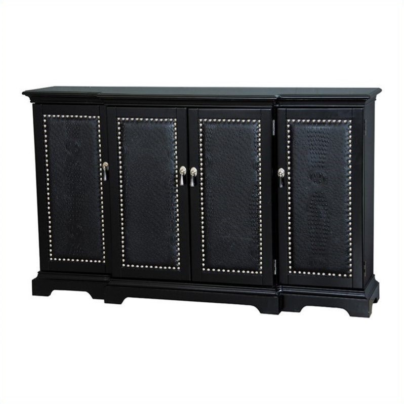 ![]() Pulaski - Console Tables - 675132 - Enjoy meals in absolute style with this credenza. Its bold color blends well with modern decor style. Highlighted by posh breakfront style construction, this breakfast bar offers plenty of space for the entire family. It is fitted with 4 doors and 3 adjustable shelves for holding cutlery and other utensils. Elegant accents include nailhead trims and artificial animal fabric on the door fronts. Artfully designed, this credenza will bring storage and style to any home.Cosmopolitan credenza in deep ebonyAccents collectionIncludes 4 doors and 3 adjustable shelvesMade of wood composites and select hardwoodsBreakfront styleFaux animal skin panels and nailhead trim on door frontsSpecifications:Overall dimensions: 36""H x 63.5""W x 17.5""D Price: 777.99 |