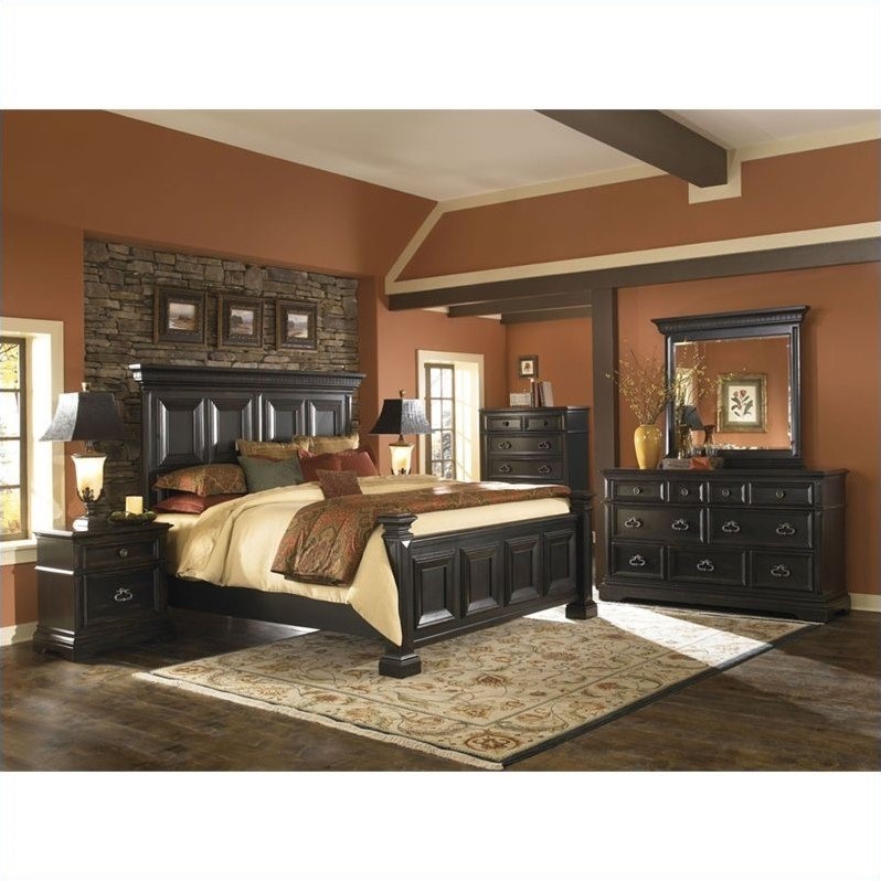 | Pulaski Brookfield Panel Bed with Nightstand Dresser and Mirror in Espresso |